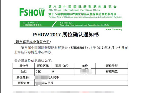 參展通知-溫州喜發實業公司將參加2017年度中國國際農化展